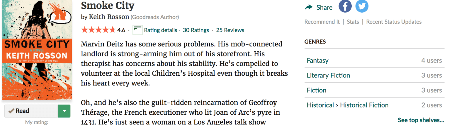 Meanwhile, the gritty, grimy realism was being seasoned with the paranormal. I was intrigued by the smokes and specters and the snippets of Marvin’s past lives. There were lots of threads in this novel, but they were also tightly knit together.